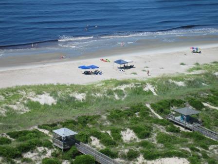If you are lucky you will see a ship entering the channel on the way up to the port in Wilmington or a pod of dolphins breaking the surf.