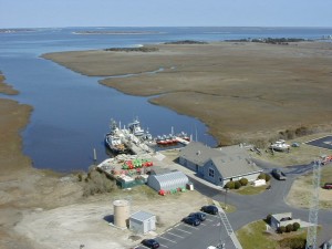 The square blue buildings (far left) of Duke Power and the 2 sets of tall cranes (far right) from the military supply terminal can be seen. The big island in the middle of the channel (picture right) is Bird Island or Battery Island and is a bird sanctuary and if you look across to the horizon, on a sunny day you can pick out the top of the Ft. Fisher NC Aquarium.
