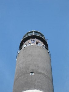 Further to the right you are now facing west were you get a great view of Oak Island and their 4 water towers. Can you pick out a 5th one? If so it is a clear day and you are looking all of the way down to Holden Beach about 13 miles away. And that parking lot sure looks like a long way down!